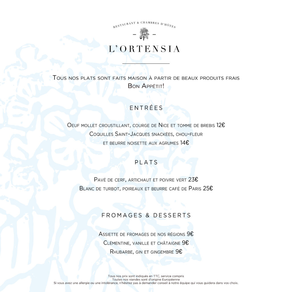 Matthieu, le chef de L’Ortensia, vous prépare des plats savoureux et finement travaillés à base de produits frais et de saison. De l’amuse bouche à la mignardise en passant par le beurre, tout ce que vous dégusterez chez nous est fait maison.