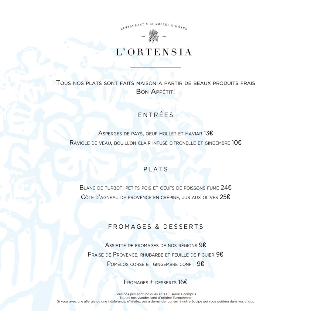 Venez Découvrir notre salle lumineuse, ou profitez de notre grande terrasse panoramique avec vue sur les Monts d’Orb. La carte évolue au fil des saisons et de l’inspiration de notre chef, pour vous offrir des saveurs authentiques et délicates.